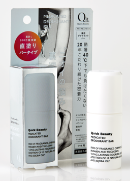 「QB薬用デオドラントシリーズ」は、2001年の販売開始時より、汗のニオイから腋臭のような強い体臭までそのメカニズムから考え、ニオイの原因となる「雑菌の繁殖」を防ぎ、ニオイを元から予防するという処方にこだわり続けてきました。