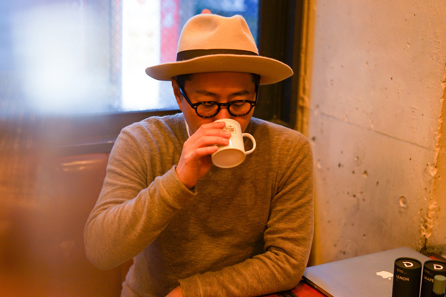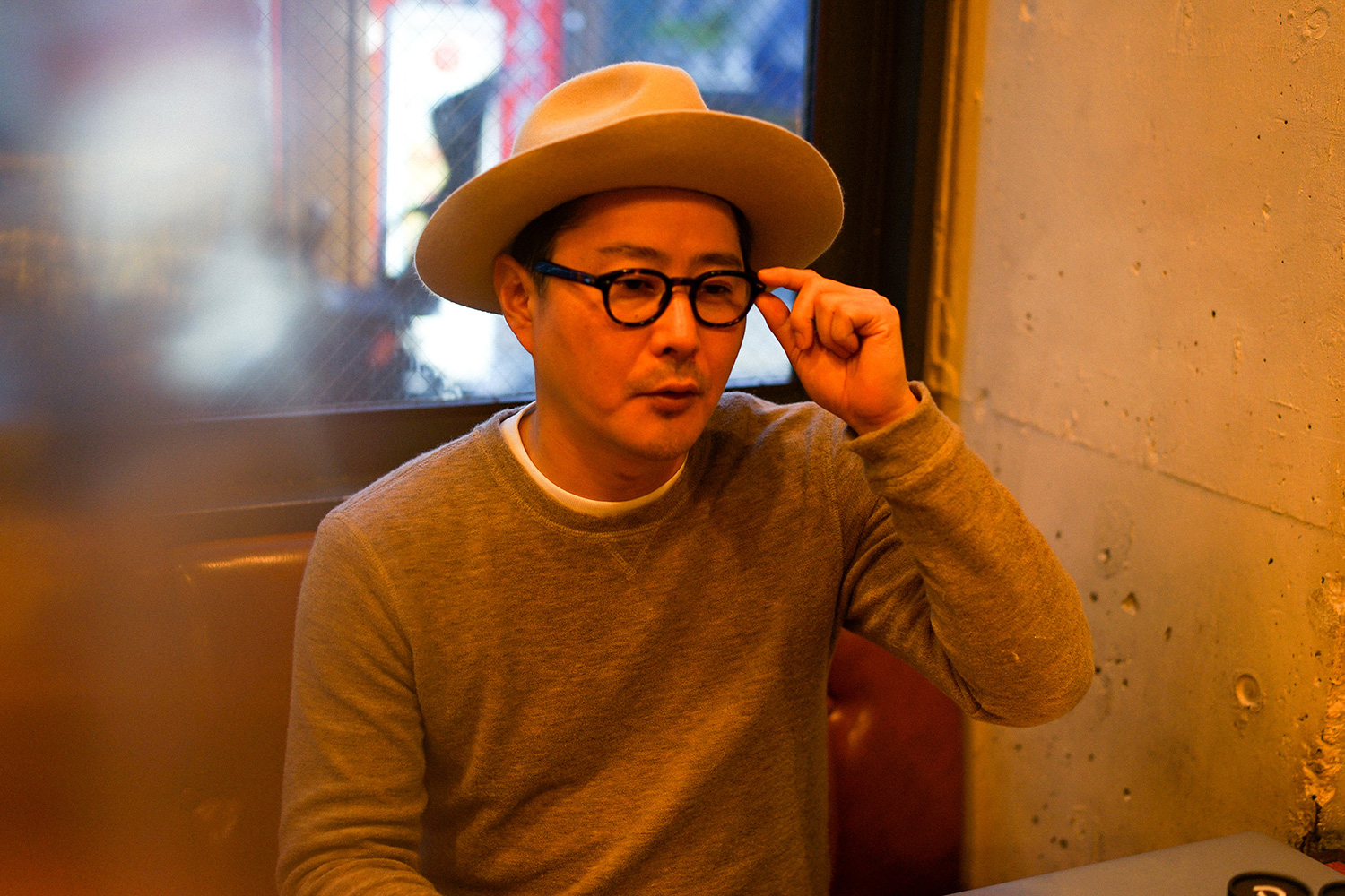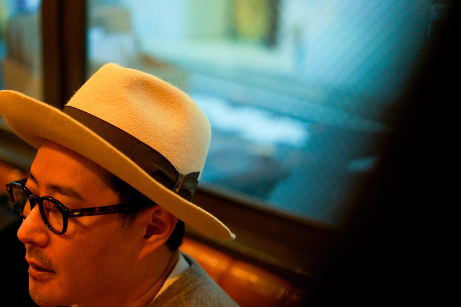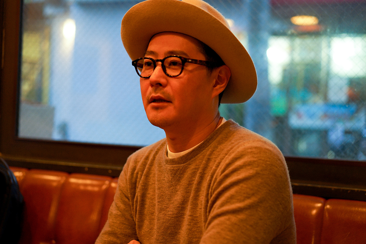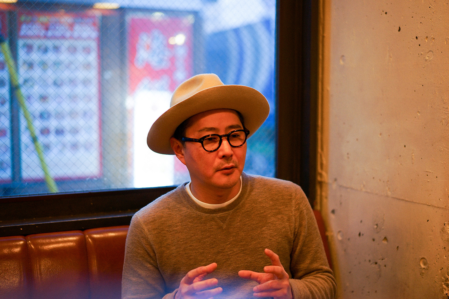帽子は常に被っています、飲食店なので(笑)。スタイルと衛生面を兼ねて、ハンバーガー屋を始めてからは、ハットをかぶるようになりました。暑いキッチンにずっといると、汗で帽子がクタクタになるので、何十個と買い替えて来ました。帽子のイメージがつき過ぎて、たまに被らずに出かけると、誰も気づいてくれません(笑)。