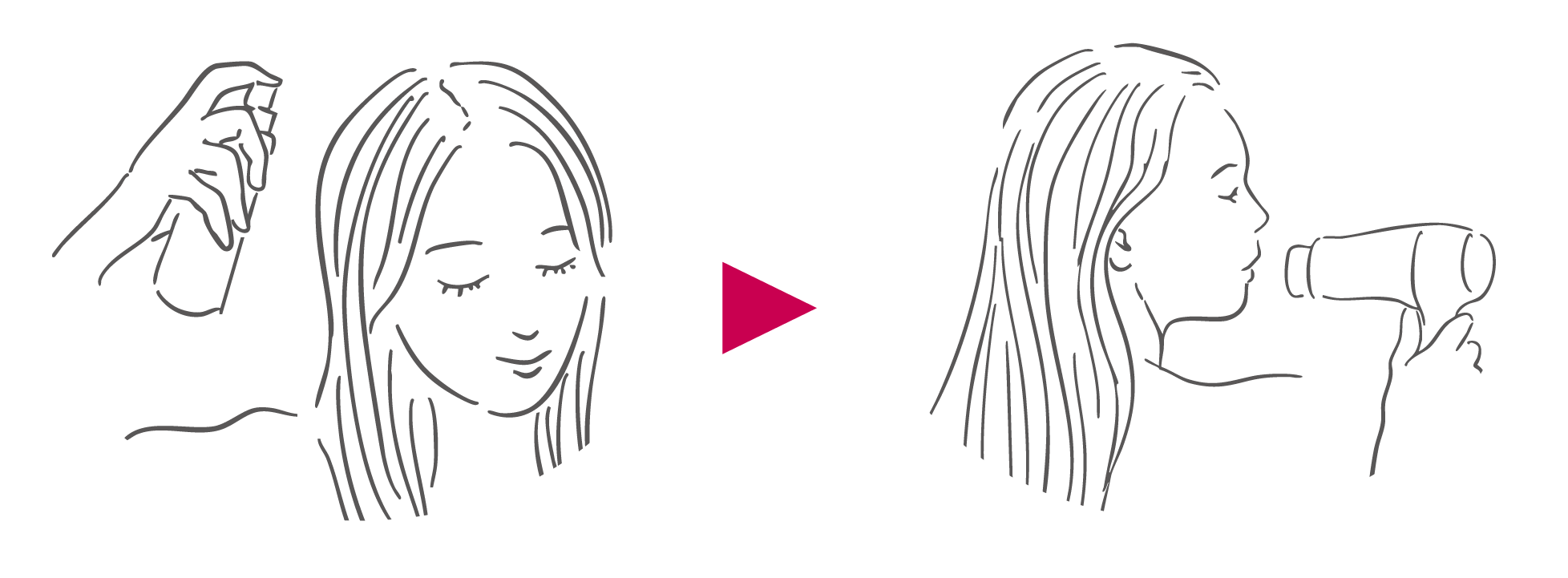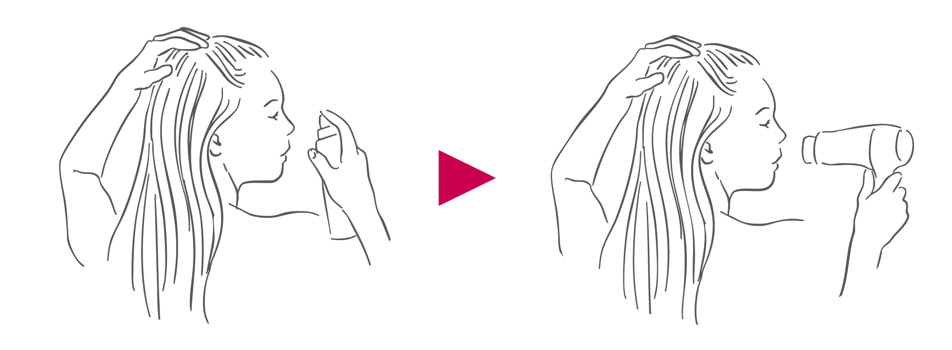 乾いた髪に約20cm離して、髪全体にスプレーした後、