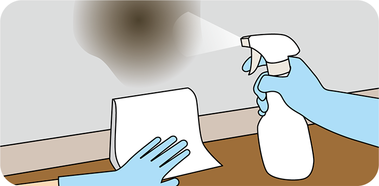 ❸対象面に付着した液剤は、水拭きを繰り返し、しっかり拭き取ってください。