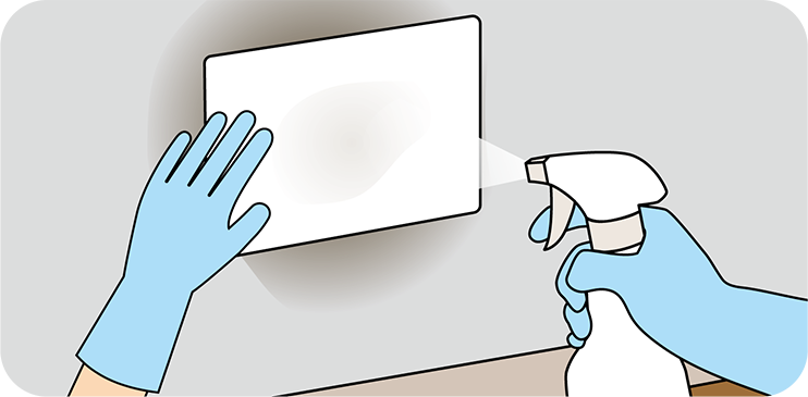 また、対象面への噴霧量が分かりにくい場合はキッチンペーパーを当てその上からスプレーしてください。
